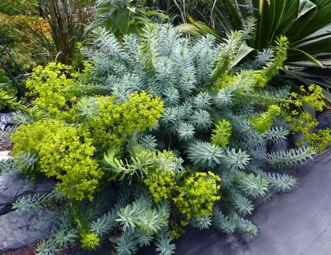 Known as Blue Haze Spurge, this ground cover plant produces blooms in later part of spring and looks very pretty with chartreuse toned blossoms and blue foliage. This ornamental plant grows well in full sun and reaches up-to 8 feet in height and measures 12 to 15 inches in width. These plants thrive well in sunny spots and also in containers. Gardeners grow Blue Haze in front of other perennial plants to lend more attractiveness to the landscape.